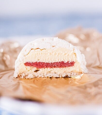 Per le meringhe a forma di semisfera, stendere la meringa in stampini di silicone (diametro 7 cm).